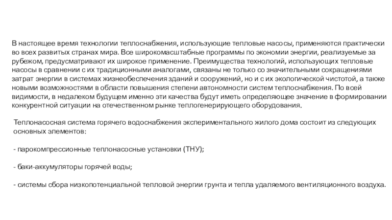 Слайд 5В настоящее время технологии теплоснабжения, использующие тепловые насосы, применяются практически