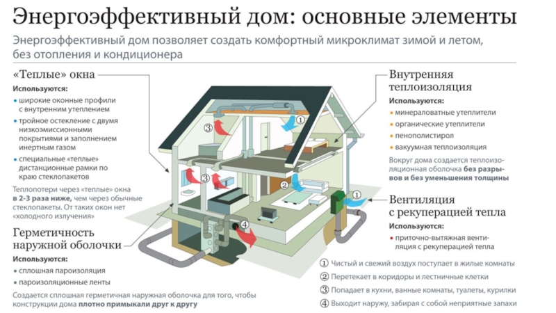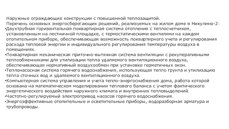 Слайд 3Наружные ограждающие конструкции с повышенной теплозащитой.