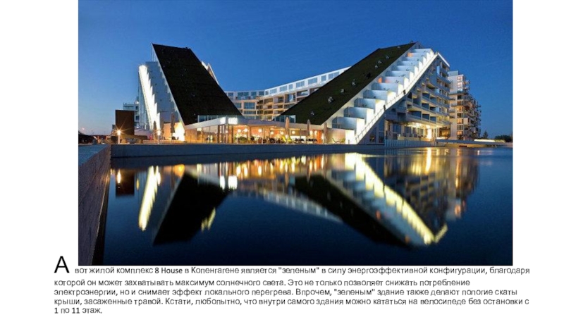 Слайд 39А вот жилой комплекс 8 House в Копенгагене является "зеленым"