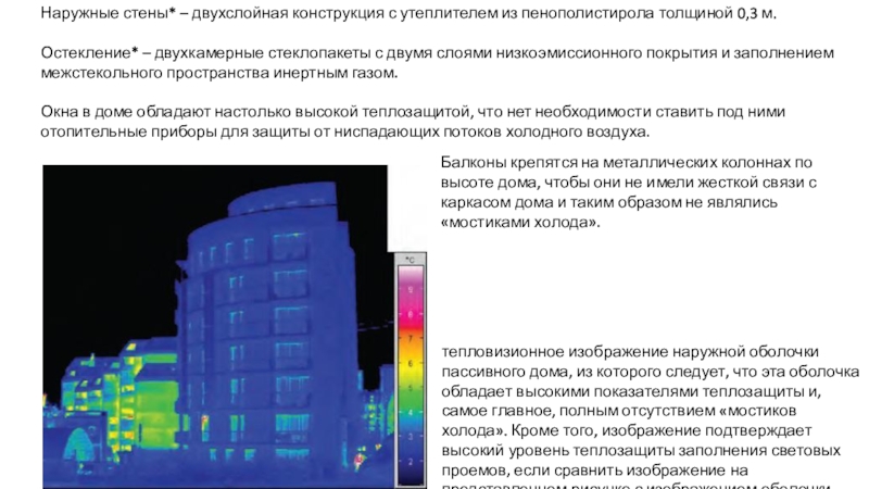 полным отсутствием «мостиков холода», в том числе в зонах оконных заполнений и в зонах примыкания балконных плит (оболочка-термос).