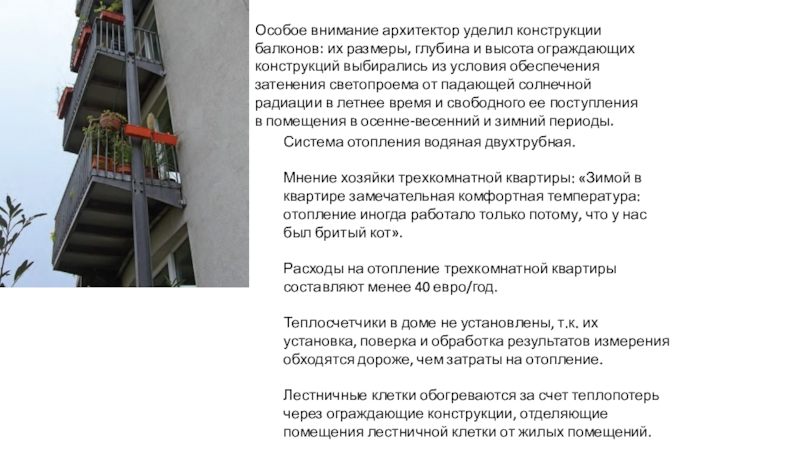 Слайд 26Особое внимание архитектор уделил конструкции балконов: их размеры, глубина и
