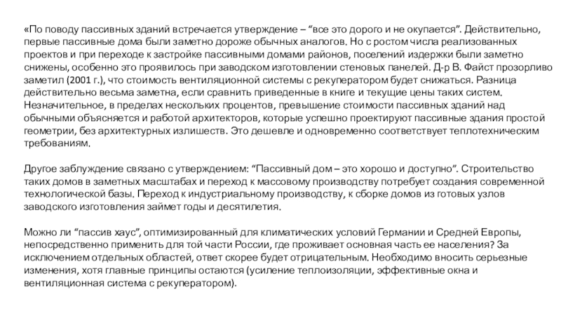 Слайд 28«По поводу пассивных зданий встречается утверждение – “все это дорого