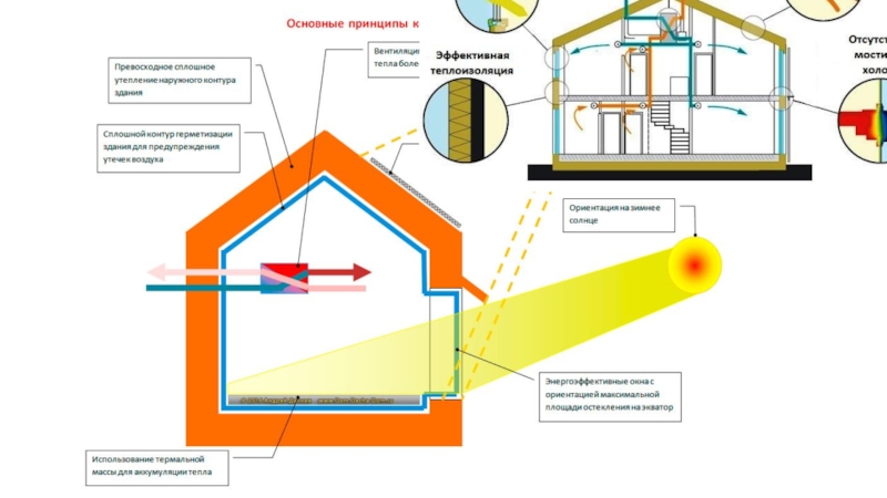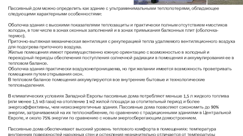 Слайд 23Пассивный дом можно определить как здание с ультраминимальными теплопотерями, обладающее