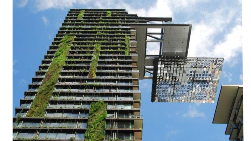 энергоэффективного строительства. Взять хотя бы то, что при его возведении использовались вторичные стройматериалы, а на его крышах и террасах разбиты сады. Разумеется, проблема отопления помещений решается за счет возобновляемых источников энергии и энергоэффективной