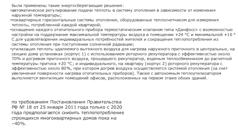 Слайд 21были применены такие энергосберегающие решения: