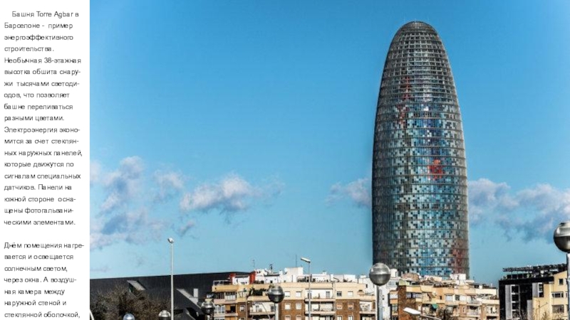 Слайд 38 Башня Torre Agbar в Барселоне - пример энергоэффективного