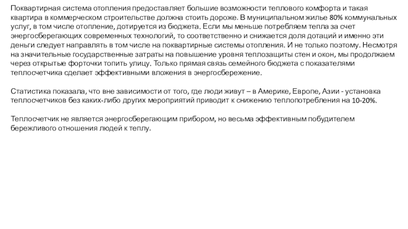 Слайд 4Поквартирная система отопления предоставляет большие возможности теплового комфорта и такая