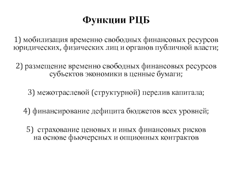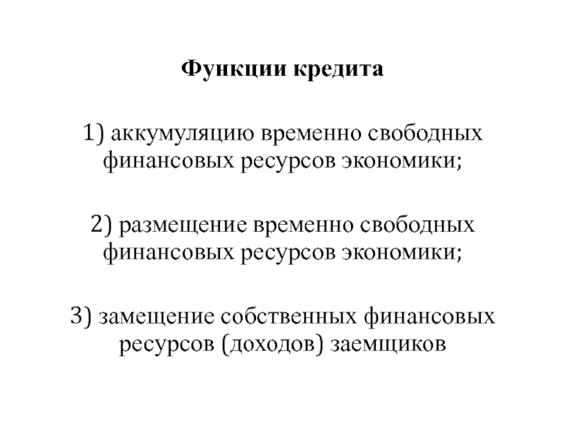 1) аккумуляцию временно свободных финансовых ресурсов экономики;