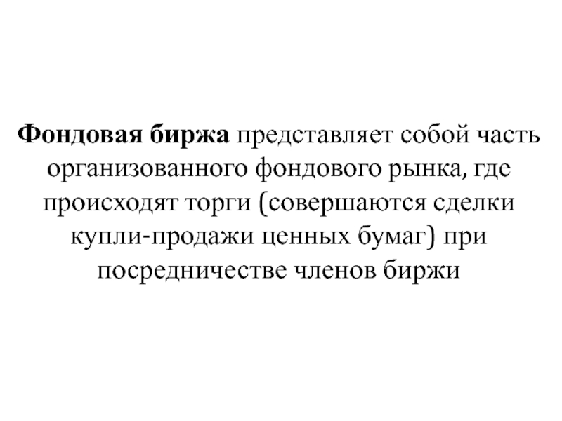 Слайд 36Фондовая биржа представляет собой часть организованного фондового рынка, где происходят