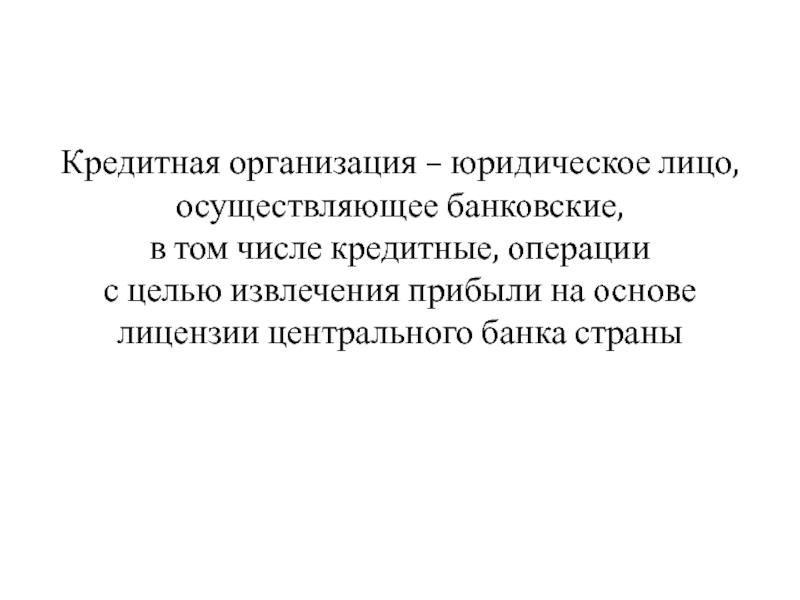 Слайд 10Кредитная организация – юридическое лицо, осуществляющее банковские,