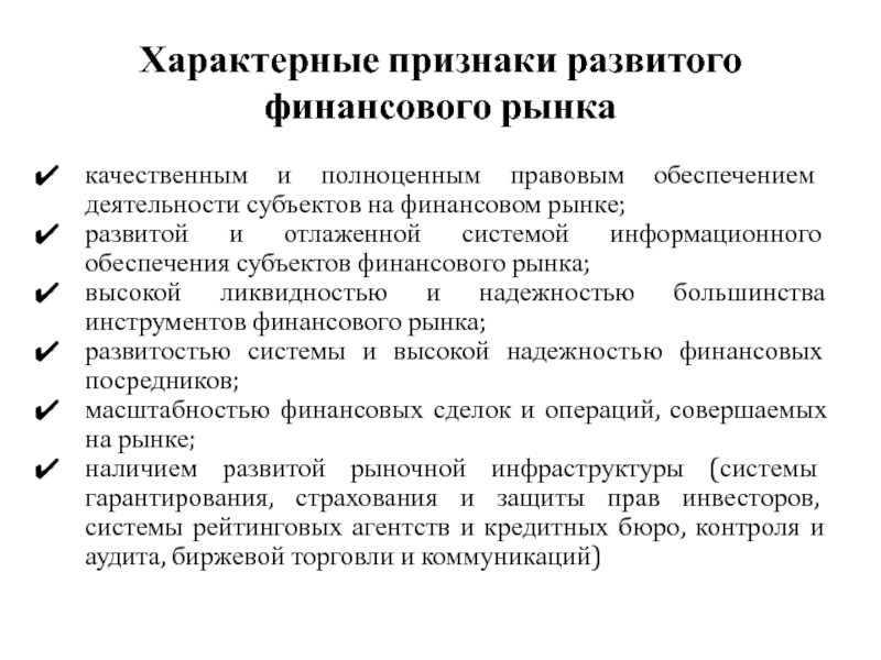 Слайд 8Характерные признаки развивающегося финансового рынка