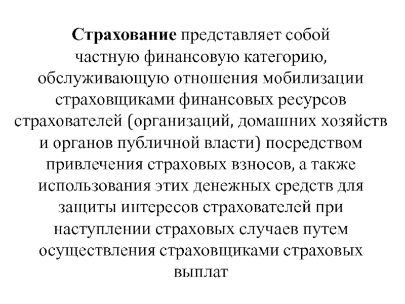 частную финансовую категорию, обслуживающую отношения мобилизации страховщиками