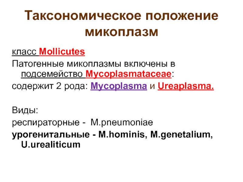 Патогенные микоплазмы включены в подсемейство Mycoplasmataceae: