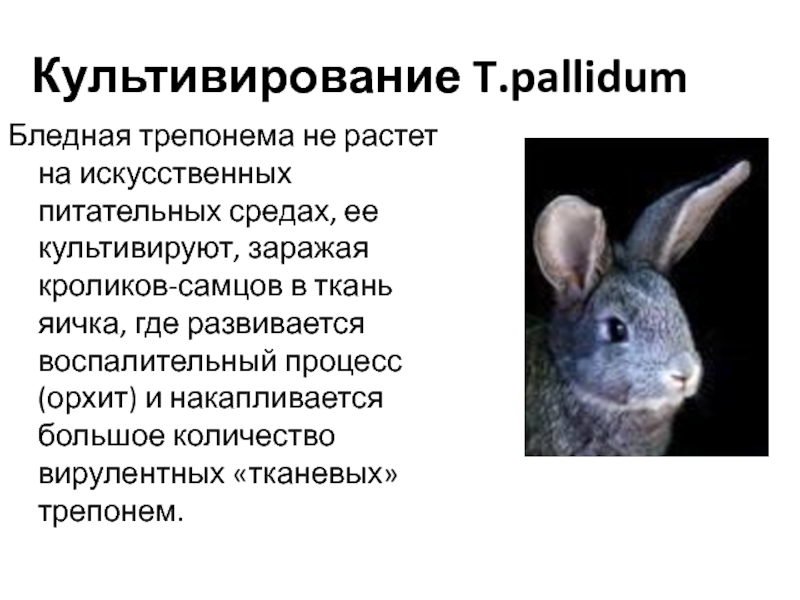 культивируют, заражая кроликов-самцов в ткань яичка, где развивается воспалительный процесс