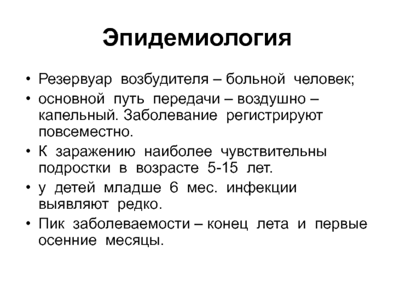 Пик заболеваемости – конец лета и первые осенние месяцы.