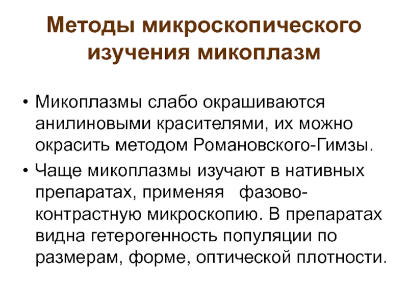 Микоплазмы слабо окрашиваются анилиновыми красителями, их можно