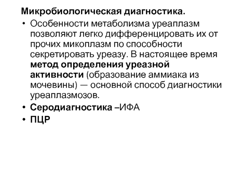 прочих микоплазм по способности секретировать уреазу. В настоящее время метод