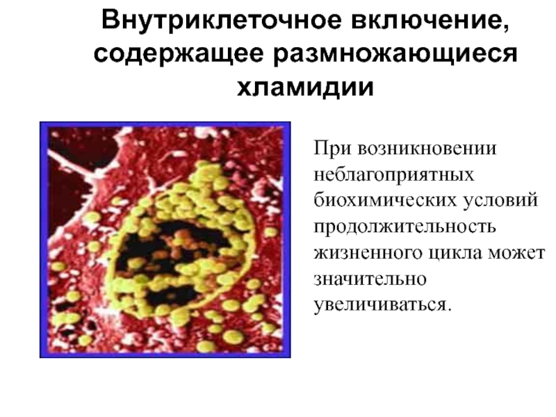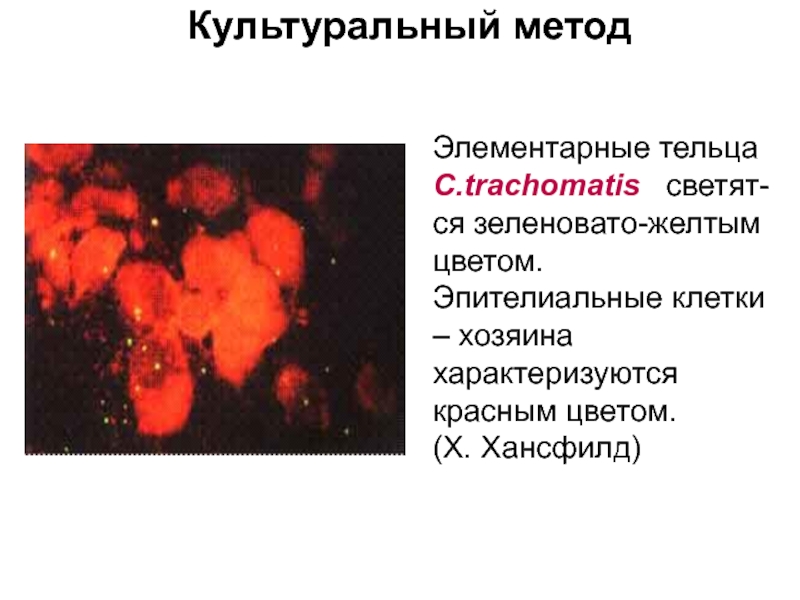 Элементарные тельца C.trachomatis светят-ся зеленовато-желтым цветом. Эпителиальные клетки –