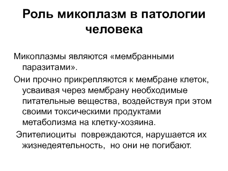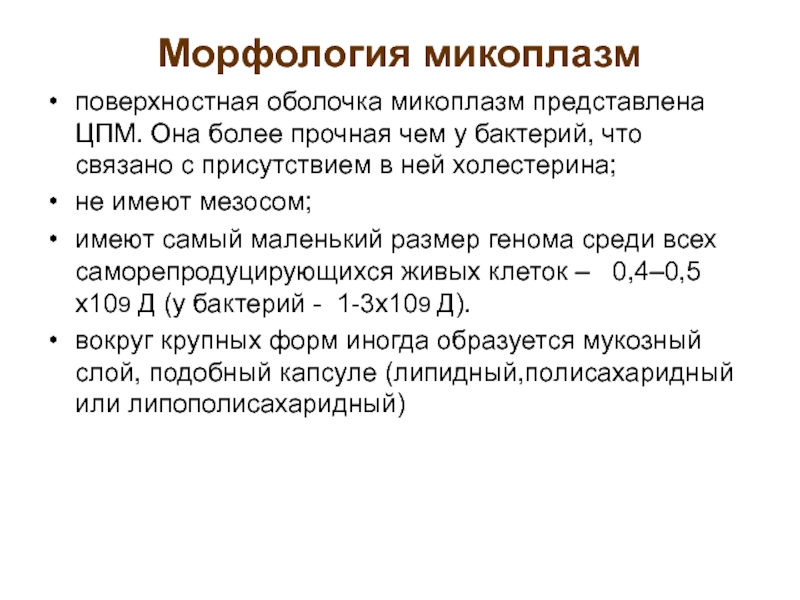 поверхностная оболочка микоплазм представлена ЦПМ. Она более прочная чем