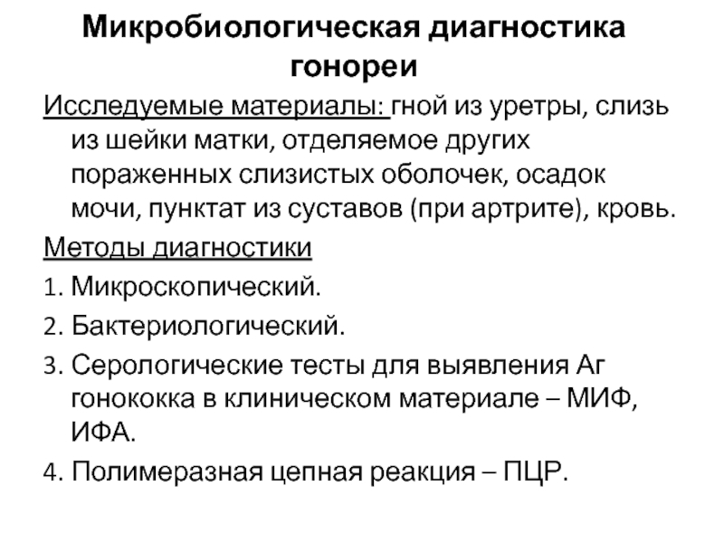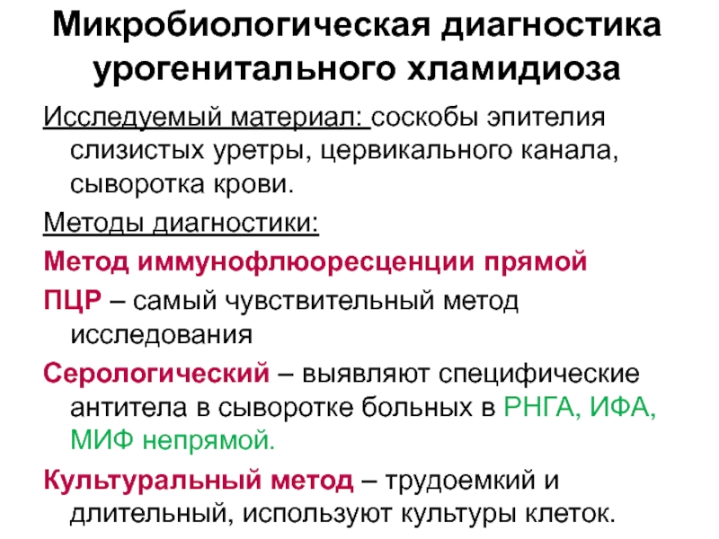 Исследуемый материал: соскобы эпителия слизистых уретры, цервикального