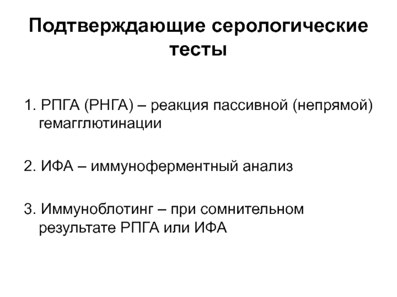Серологический – выявляют специфические антитела в сыворотке больных в РНГА, ИФА, МИФ непрямой.