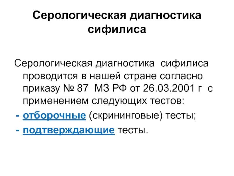 Серологическая диагностика сифилиса проводится в нашей стране согласно