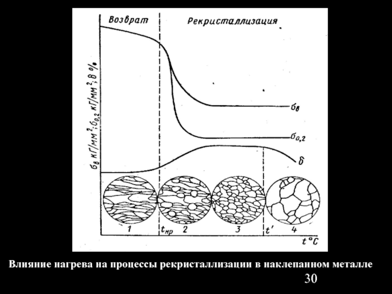 Слайд 30Влияние нагрева на процессы рекристаллизации в наклепанном металле