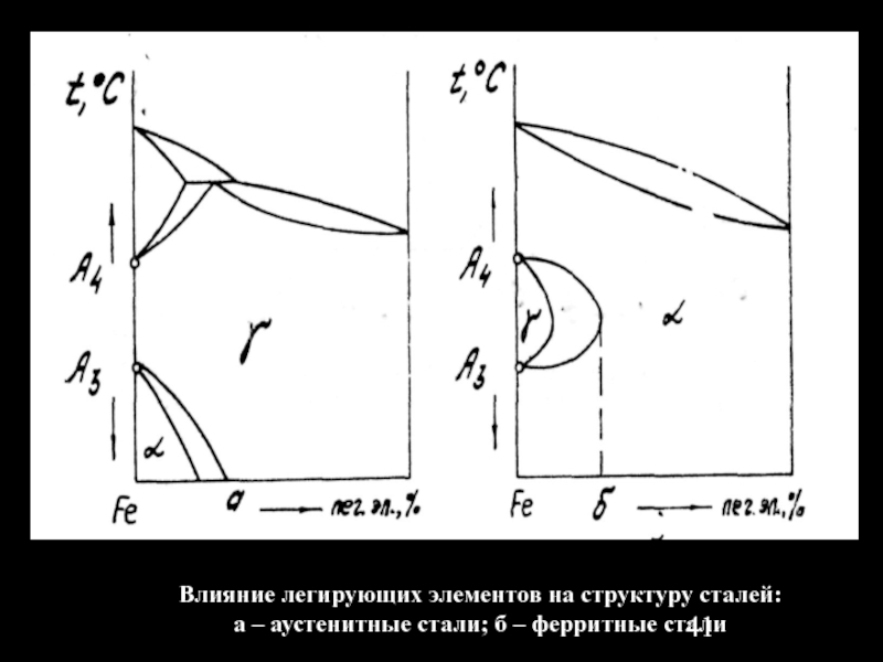 Слайд 41Влияние легирующих элементов на структуру сталей:
