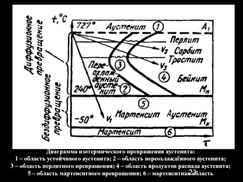 Слайд 23Диаграмма изотермического превращения аустенита: