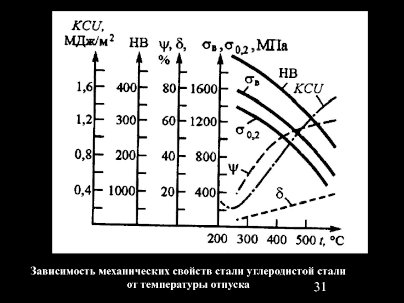 Слайд 31Зависимость механических свойств стали углеродистой стали