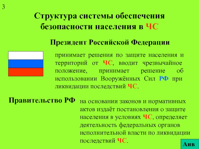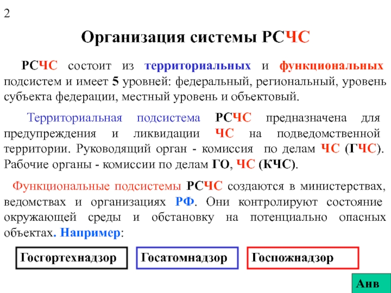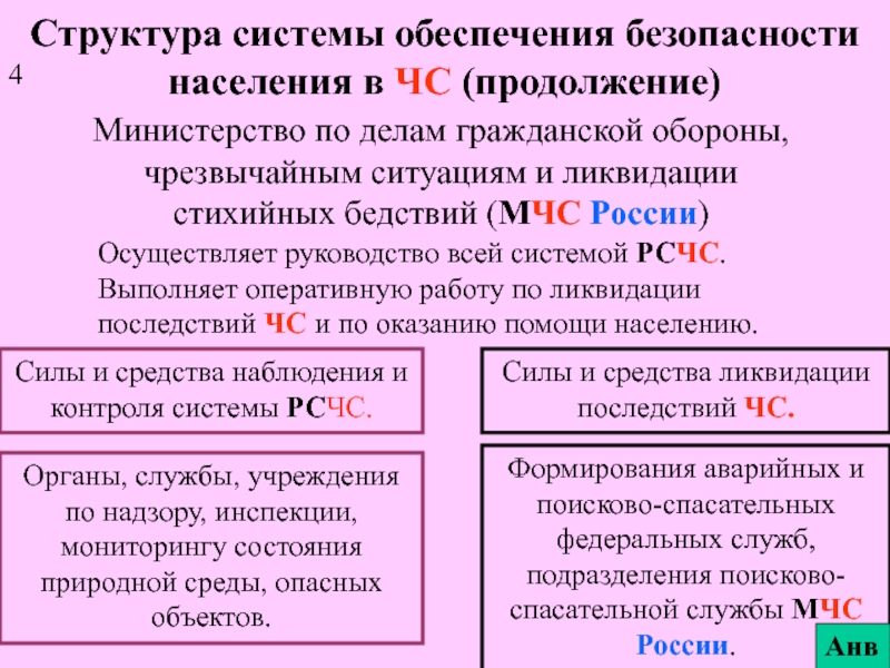 и территорий от ЧС природного и техногенного характера» в РФ функционирует Единая государственная система предупреждения и ликвидации стихийных бедствий (РСЧС). Эта система имеет органы управления, силы и средства федеральных органов исполнительной власти, органов исполнительной власти субъектов РФ, органов местного самоуправления, организаций, в полномочия которых входит решение вопросов по защите населения от ЧС.