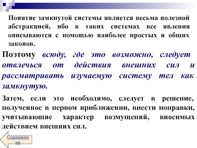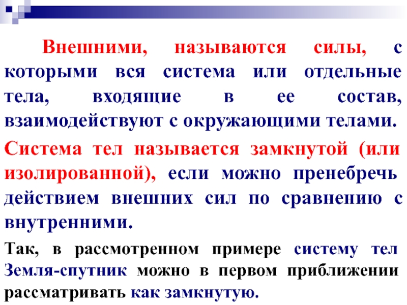 Поэтому всюду, где это возможно, следует отвлечься от действия внешних сил и рассматривать изучаемую систему тел как замкнутую.