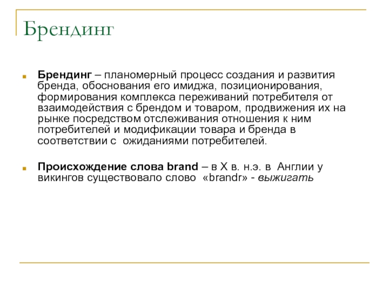 Брендинг – планомерный процесс создания и развития бренда, обоснования его