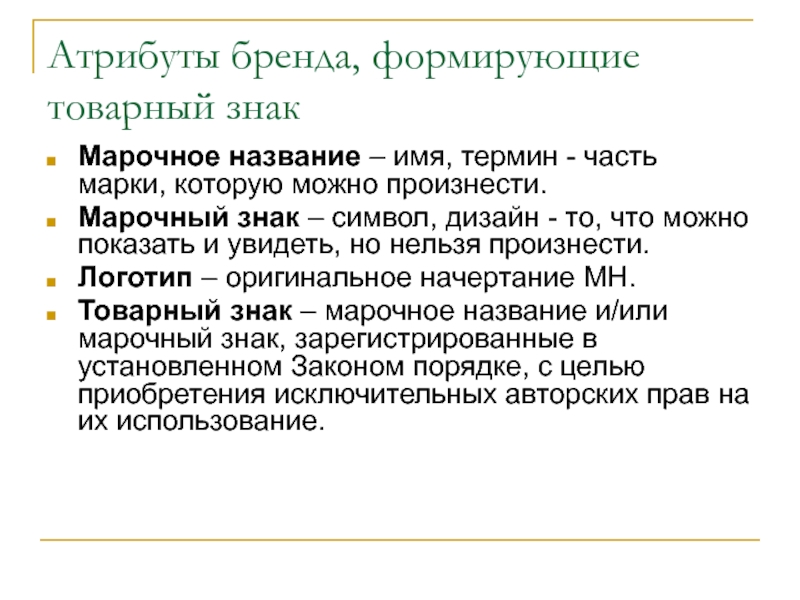 Слайд 18Атрибуты бренда, формирующие товарный знак