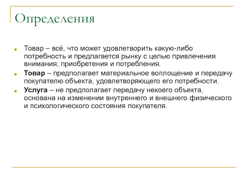 Товар – всё, что может удовлетворить какую-либо потребность и предлагается