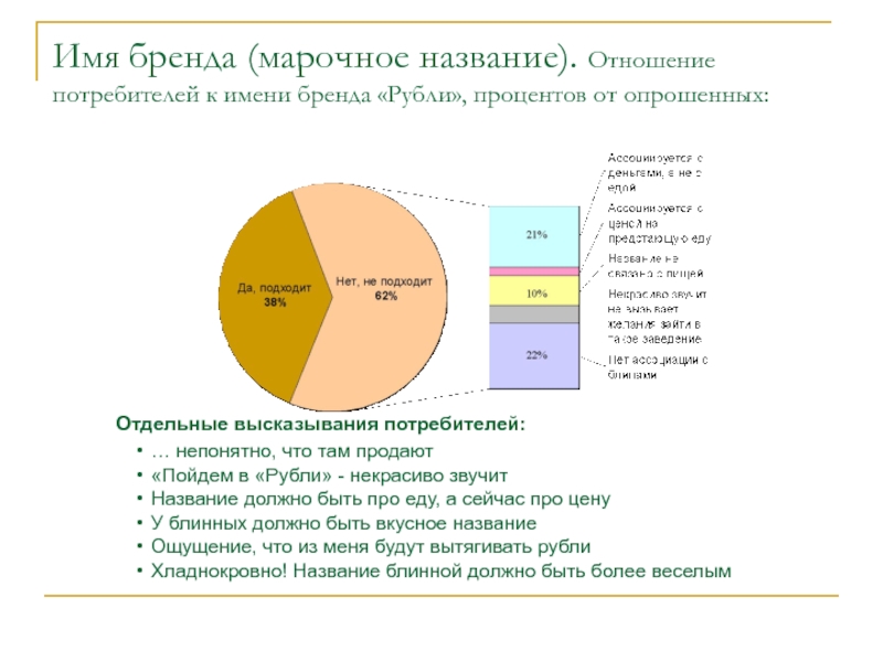 Слайд 15Имя бренда (марочное название). Отношение потребителей к имени бренда «Рубли»,