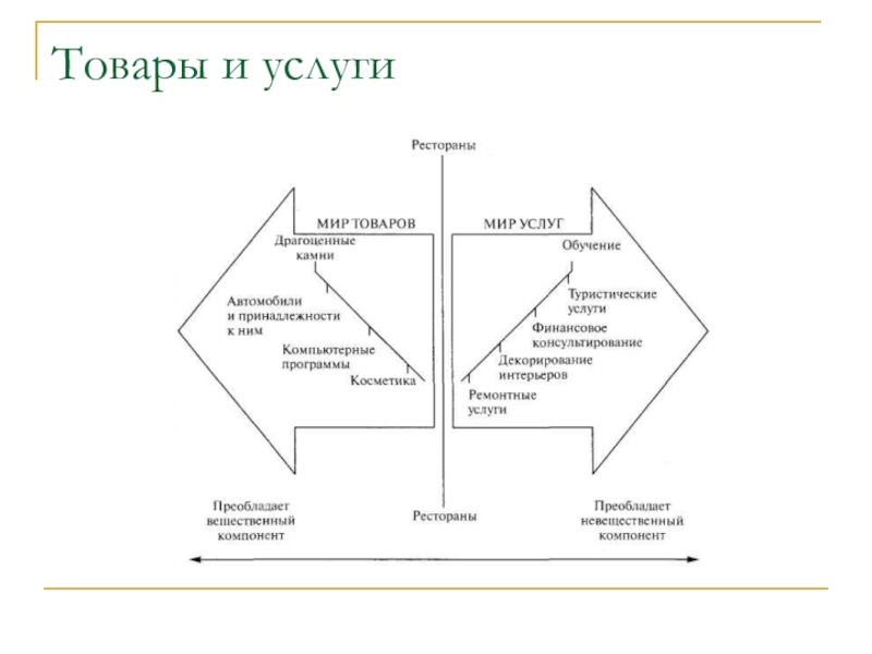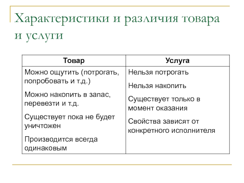 Услуга – не предполагает передачу некоего объекта, основана на изменении внутреннего и внешнего физического и психологического состояния покупателя.