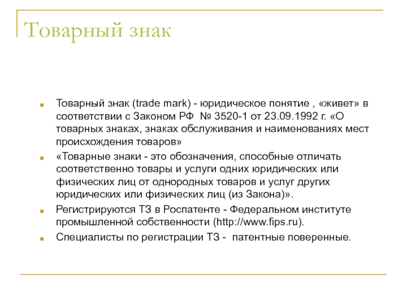 Товарный знак (trade mark) - юридическое понятие , «живет»