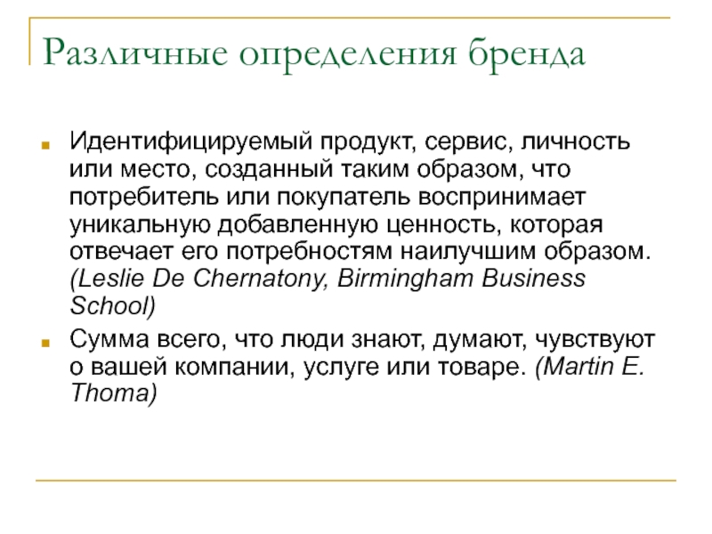 Бренд с точки зрения потребителя - совокупность физических и эмоциональных переживаний, сформированных у потребителя на основе потребления товара, восприятия элементов идентификации, продвижения, распространения, ценообразования, которые делают потребление товара и взаимодействие с ним желанным и приятным (авторское определение).