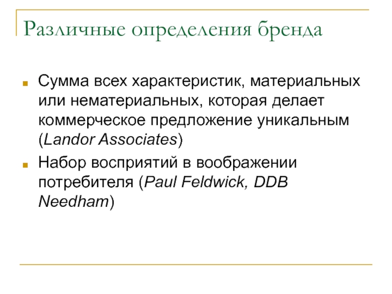 Атрибуты бренда – набор сенсорных характеристик имеющих отношение к