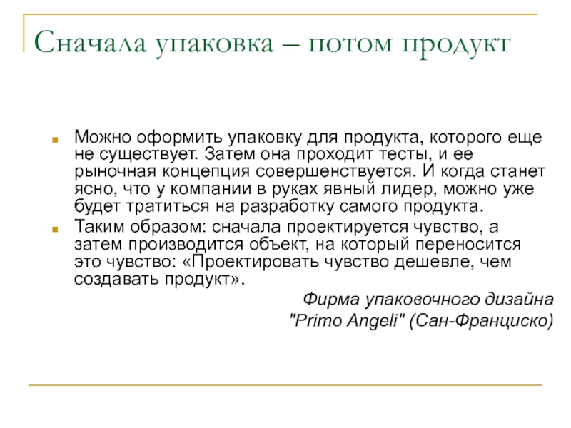Таким образом: сначала проектируется чувство, а затем производится объект, на который переносится это чувство: «Проектировать чувство дешевле, чем создавать продукт».