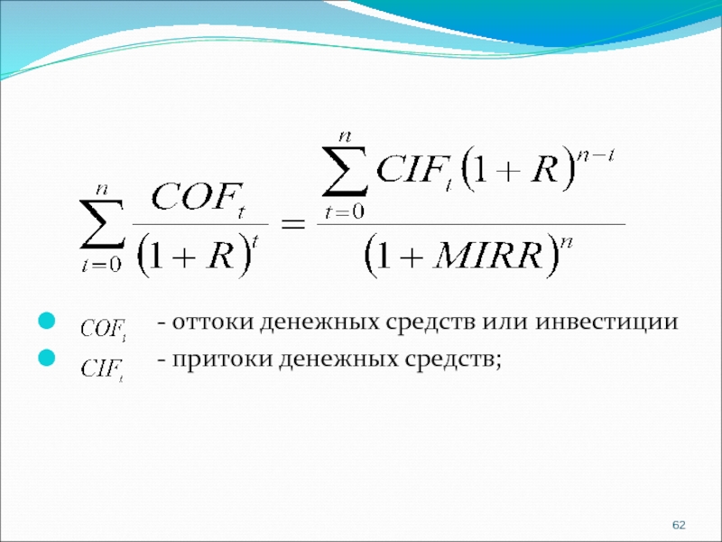 Слайд 58IRR – внутренняя норма рентабельности (доходности), та ставка дисконта при