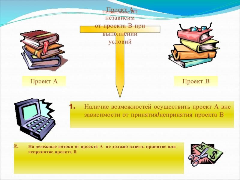 денежные потоки от проекта А не должно влиять принятие или непринятие проекта В