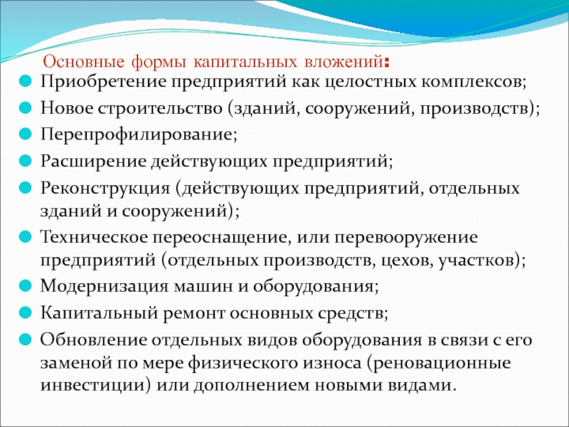 Слайд 7Основные формы капитальных вложений: