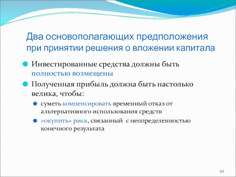 стоимость денежных поступлений, предположений, что они могут быть реинвестированы по цене капитала.