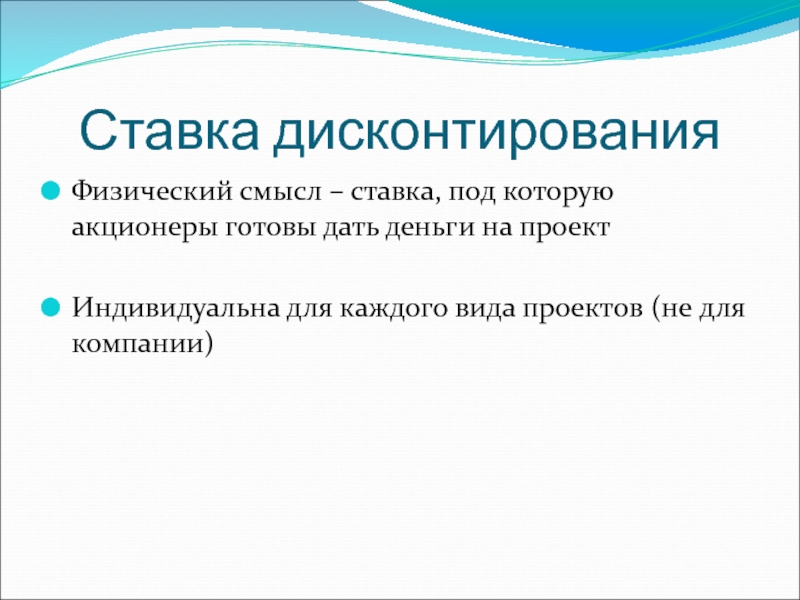 то проект при рассматриваемой ставке дисконтирования считается приемлемым.