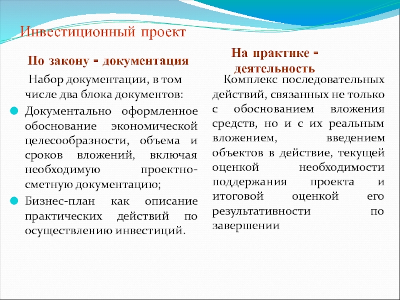 Понятие «инвестиционный проект» трактуется в