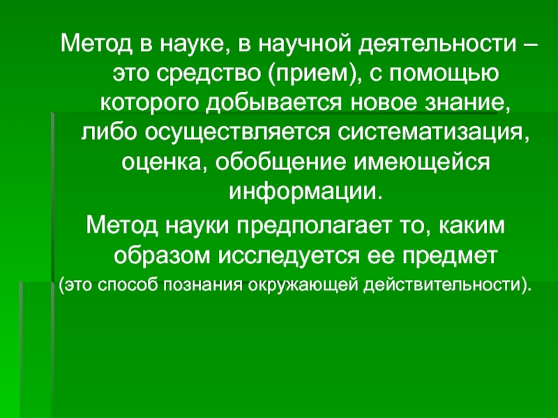 Слайд 12Метод в науке, в научной деятельности – это средство (прием),
