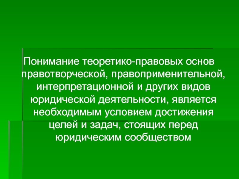 Понимание теоретико-правовых основ правотворческой, правоприменительной, интерпретационной и других видов юридической