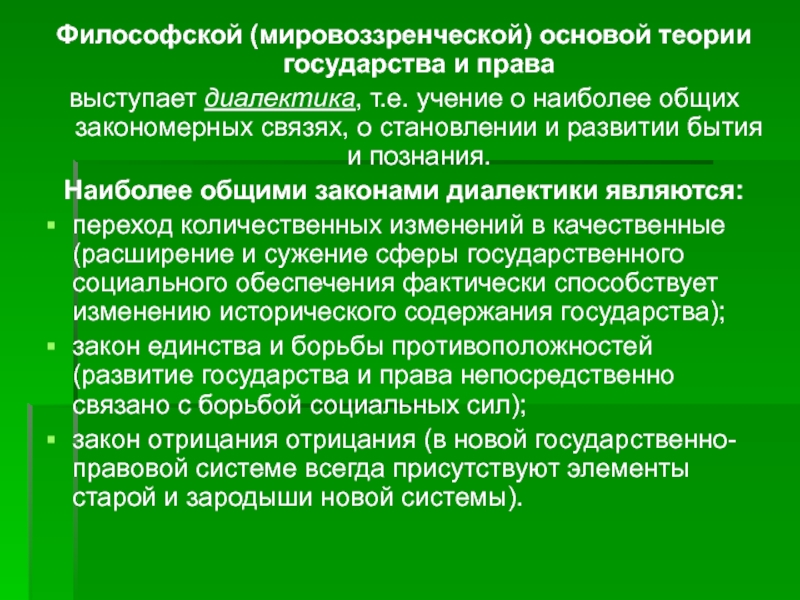 Слайд 13Философской (мировоззренческой) основой теории государства и права